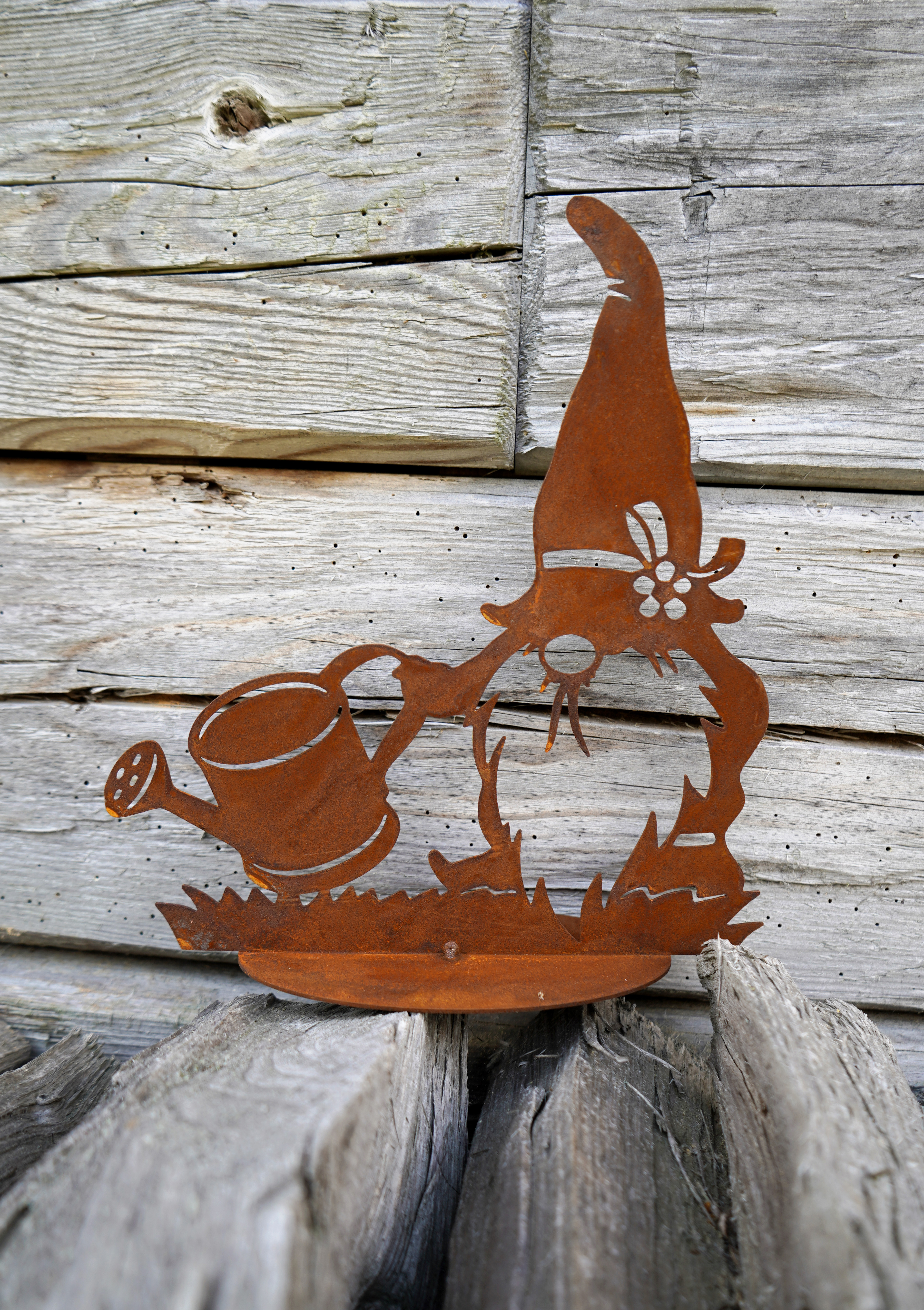 Edelrost Gartenzwerg Toni mit Gießkanne